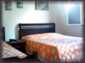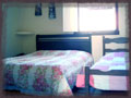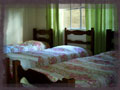 (qtº02): Uma cama de casal e uma de solteiro, frigobar, TV,