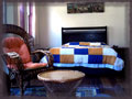 (qtº08): Uma cama de casal, anti-sala, frigobar, TV, Telefone,